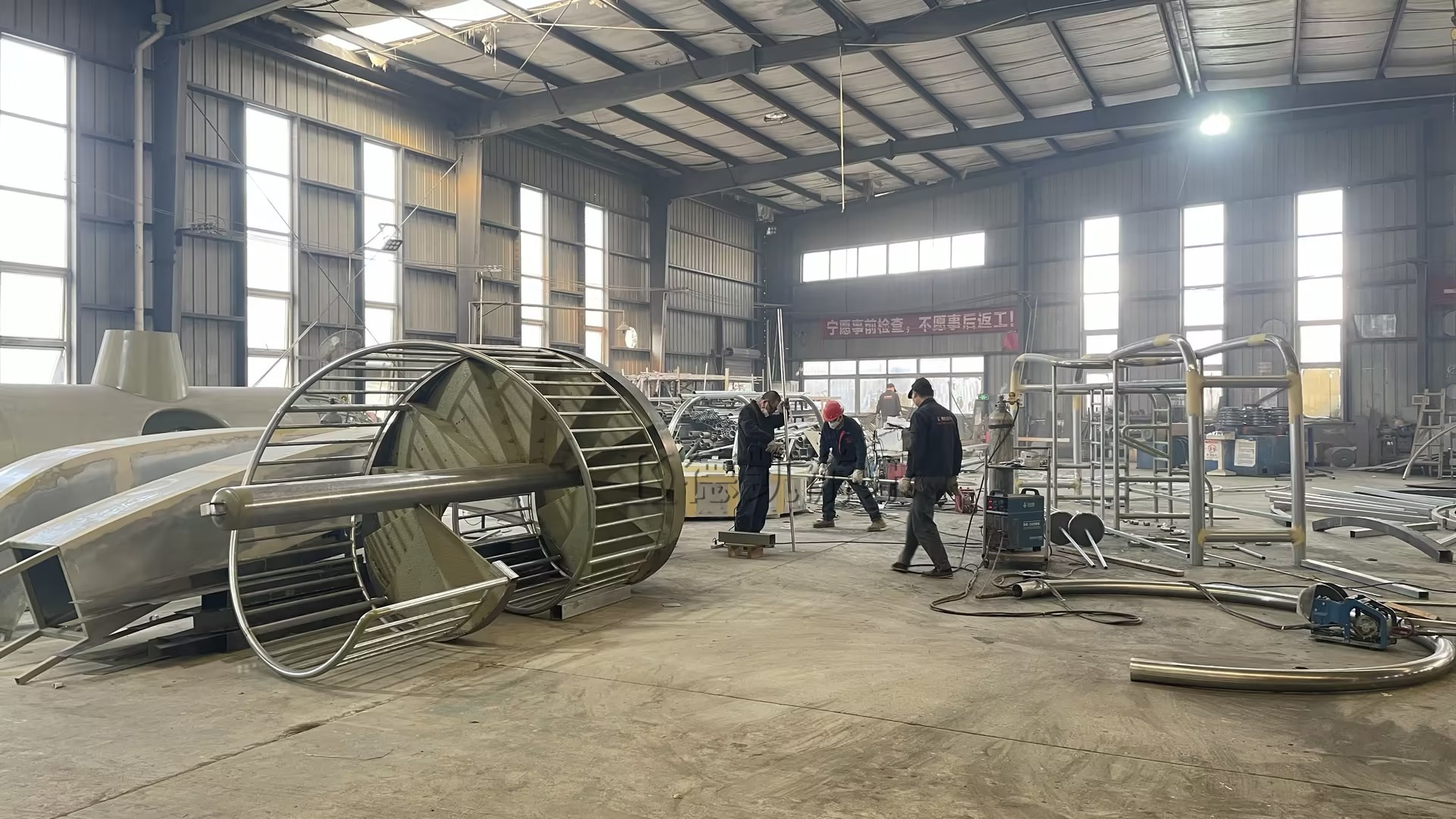 一派熱火朝天的繁忙景象:智能切割設備火花輕濺、大型機床轟鳴作響、工人們在各工序前專注作業、質檢人員一絲不茍地測量記錄……這里,正是公司所有奇幻與歡樂的“起源之地”。目前,為保障國內外多個重點項目(“華僑城”、“西安文旅項目”等)的順利推進,我司生產車間正開足馬力,全線進入高效、有序的“奮戰”模式。